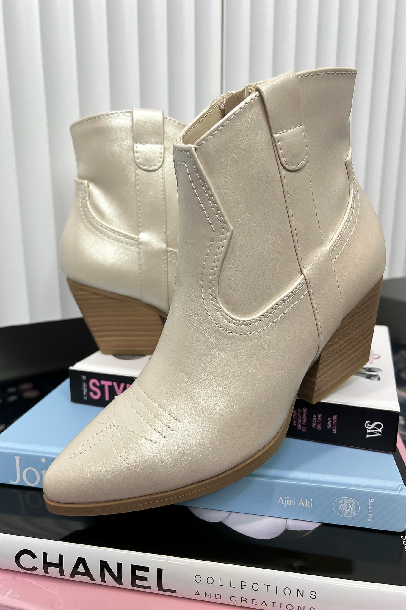 Details: Yeehaw! These Western Cowgirl Heeled Booties are the perfect addition to any cowgirl's wardrobe. With a pointed-toe design, angular stacked-heel, and convenient side pull tabs, you'll be ready to take on the wild, wild west in style. Giddy up!"