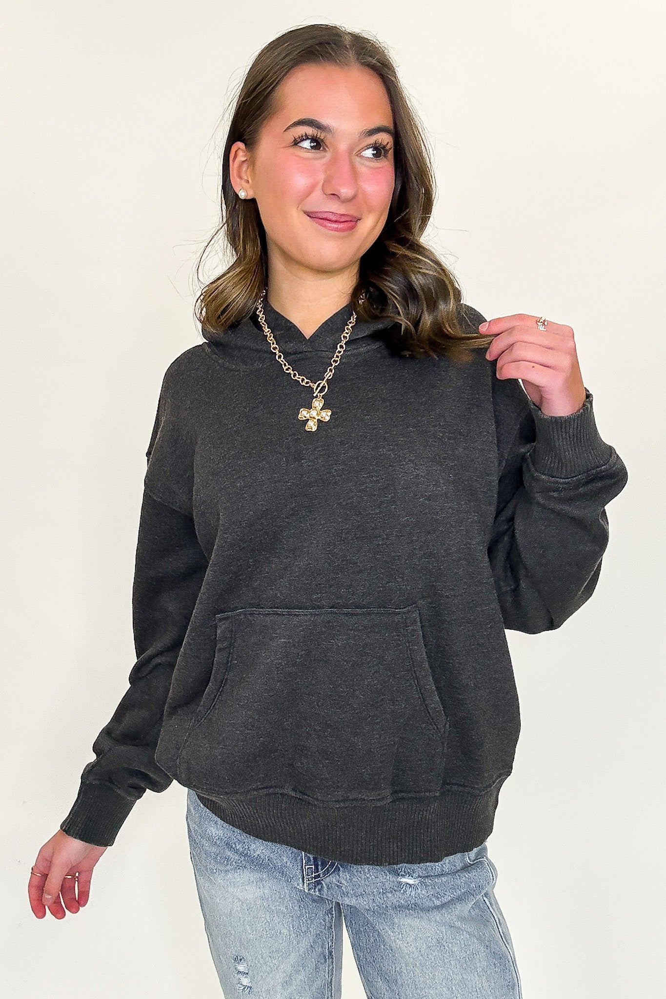 Additional Details: This cozy pullover style is designed for effortless everyday wear, blending comfort, versatility, and an easygoing feel into one wardrobe essential. With its relaxed silhouette and soft-touch feel, it offers the kind of laid-back comfort that works beautifully for lounging at home, running errands, weekend outings, casual travel days, and everything in between. Easy to layer over your favorite basics or wear on its own, this piece transitions seamlessly through cooler seasons while maintaining a timeless, casual appeal. It pairs naturally with jeans, leggings, shorts, joggers, or lounge bottoms, making styling simple no matter the occasion. Whether you're building a relaxed off-duty outfit or looking for a dependable staple to wear on repeat, this pullover delivers the perfect balance of cozy texture, casual polish, and all-day comfort. Its easy fit and versatile styling potential make it a must-have addition to any everyday wardrobe, offering a look that feels current, comfortable, and endlessly wearable season after season.