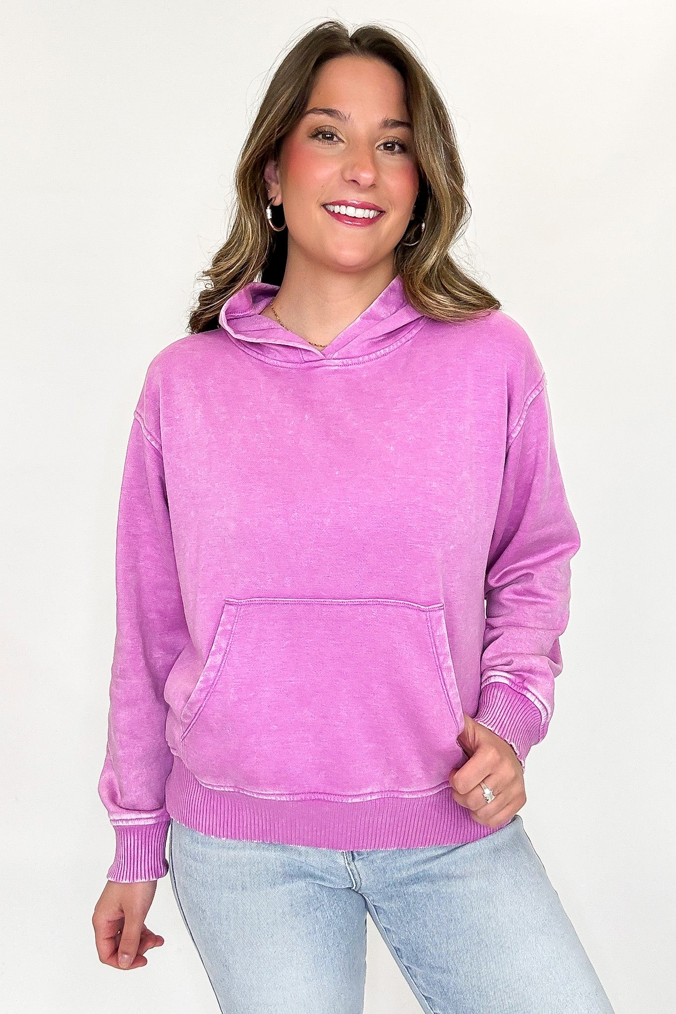 Details: Cozy with a cool, lived-in edge, the Soft Burnout Acid Wash Hooded Sweatshirt is the perfect blend of comfort and style. Designed with an on-trend acid wash finish and classic kangaroo pocket, this fleece hoodie delivers that effortless vintage vibe you'll reach for on repeat.