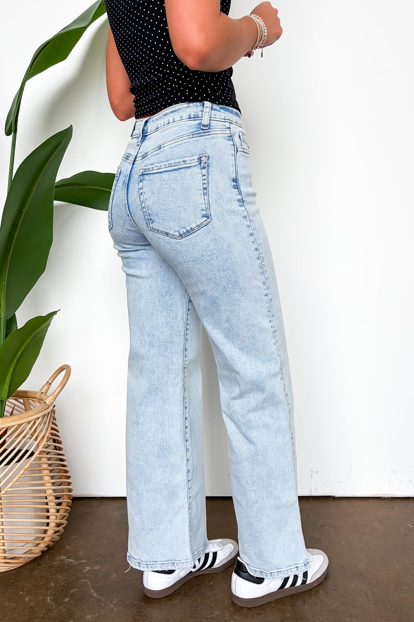 Details: Meet the jeans that do it all. The Effortless Icon features a flattering high rise and an easy wide leg that creates a clean, elongated silhouette. Finished in a soft light wash, these jeans deliver that perfectly relaxed, put-together look—no styling stress required.