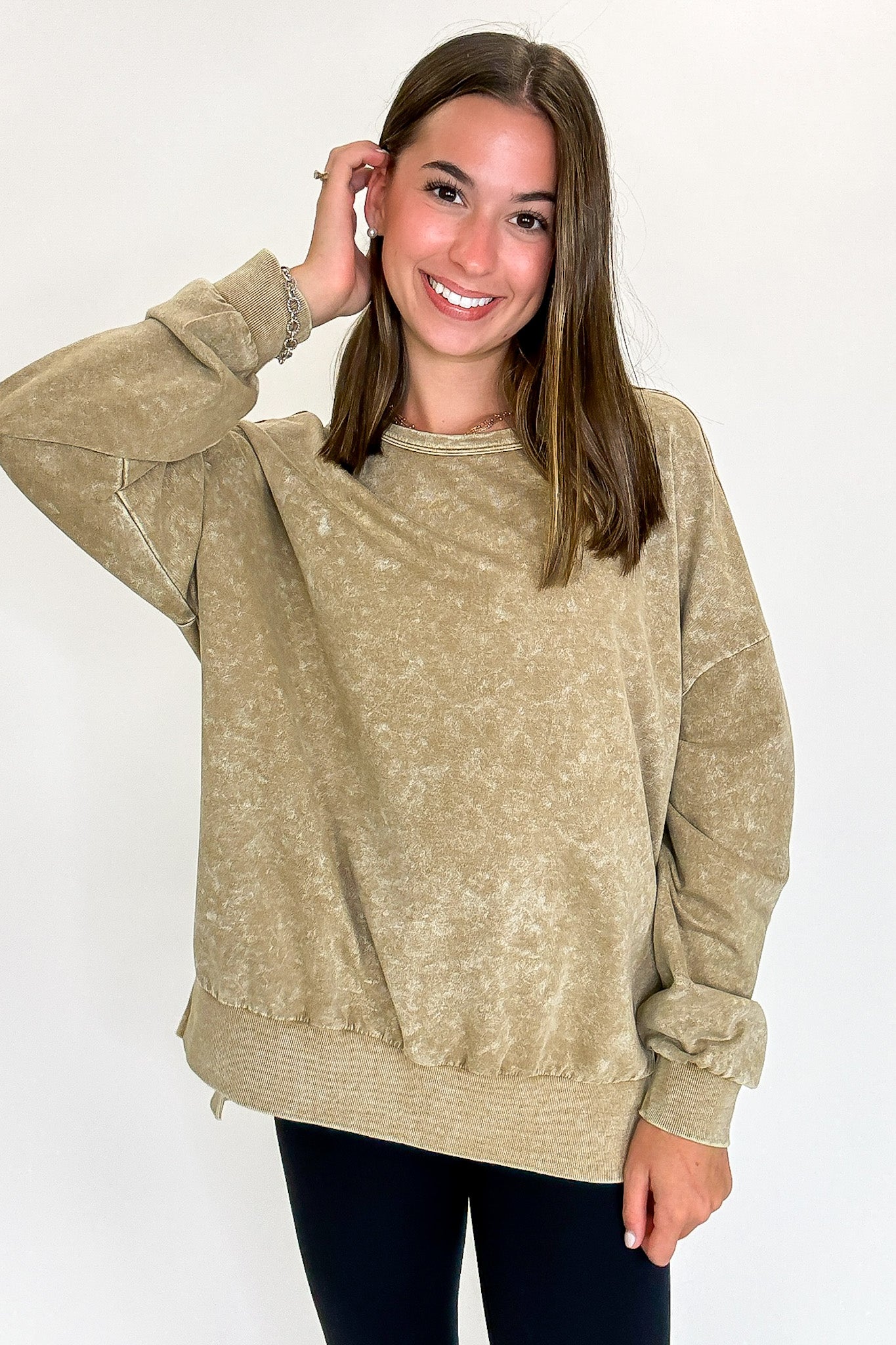 Additional Details: This cozy pullover style is designed for effortless everyday wear, blending comfort, versatility, and an easygoing feel into one wardrobe essential. With its relaxed silhouette and soft-touch feel, it offers the kind of laid-back comfort that works beautifully for lounging at home, running errands, weekend outings, casual travel days, and everything in between. Easy to layer over your favorite basics or wear on its own, this piece transitions seamlessly through cooler seasons while maintaining a timeless, casual appeal. It pairs naturally with jeans, leggings, shorts, joggers, or lounge bottoms, making styling simple no matter the occasion. Whether you're building a relaxed off-duty outfit or looking for a dependable staple to wear on repeat, this pullover delivers the perfect balance of cozy texture, casual polish, and all-day comfort. Its easy fit and versatile styling potential make it a must-have addition to any everyday wardrobe, offering a look that feels current, comfortable, and endlessly wearable season after season.