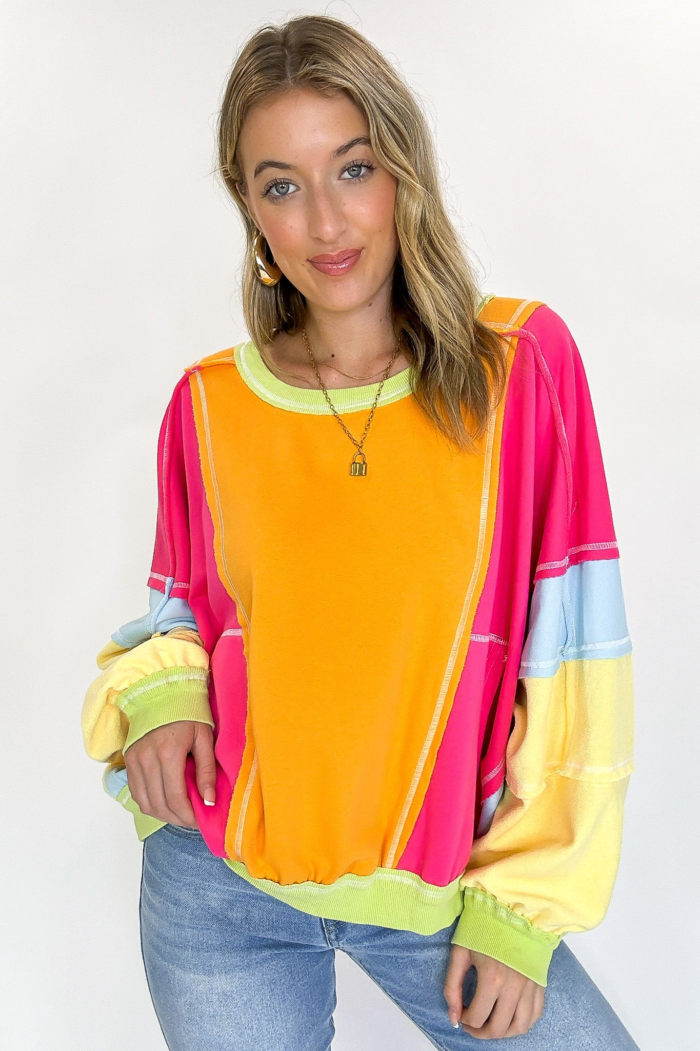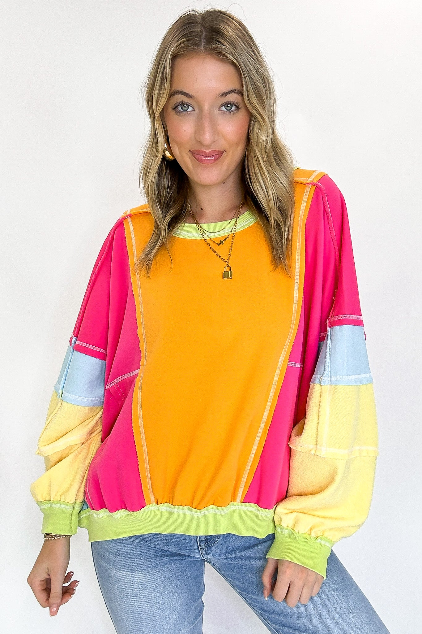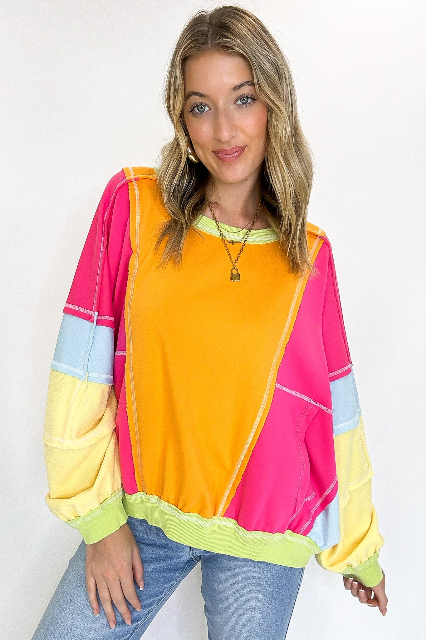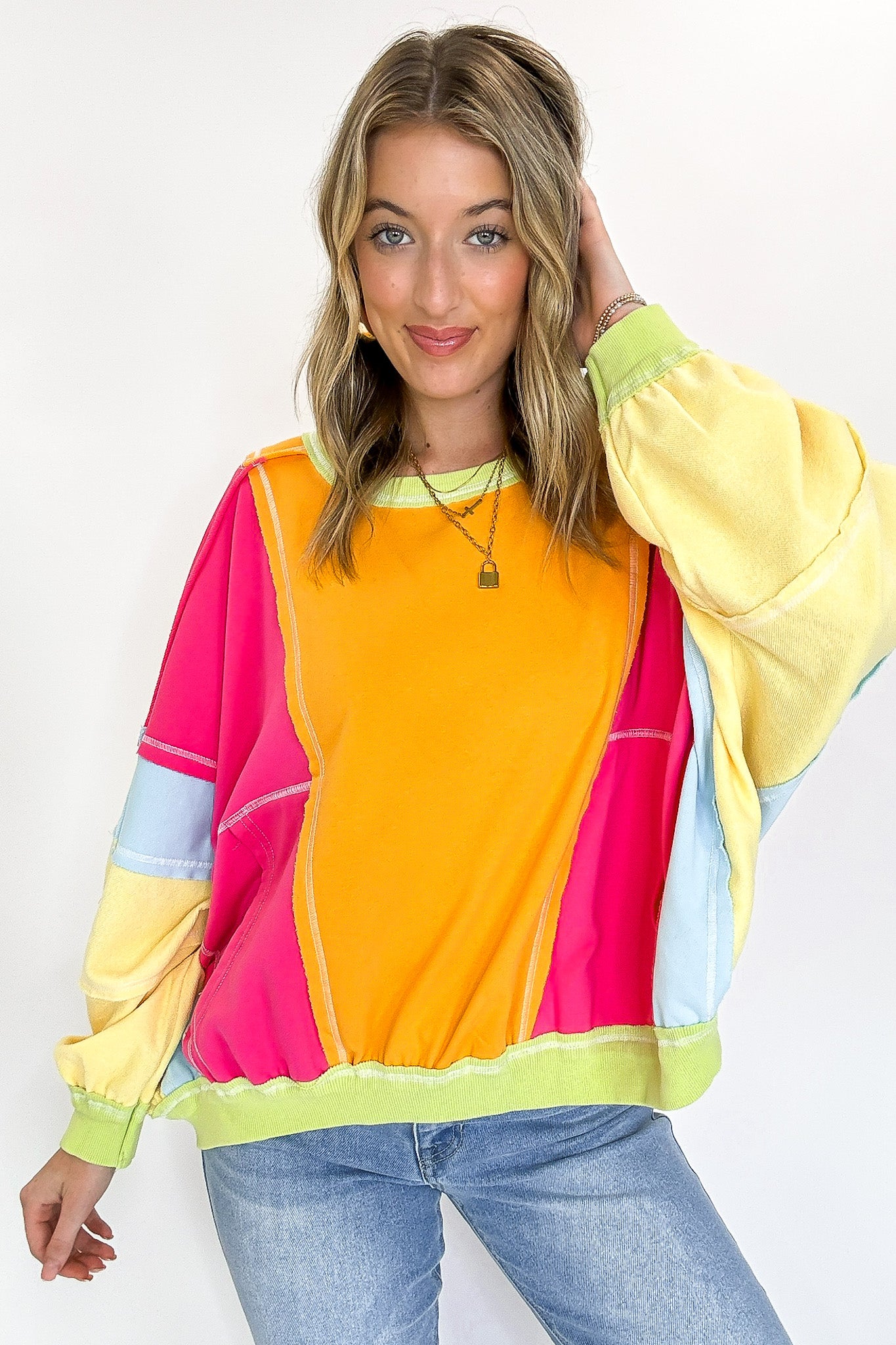 Details: Push the limits of casual cool in the Edge Theory Pullover — a raw-edged, color-blocked dream with a perfectly vintage vibe. Made from ultra-soft French terry and garment-washed for that worn-in feel, this sweatshirt blends bold color blocking with distressed details for a look that's low effort, high impact.