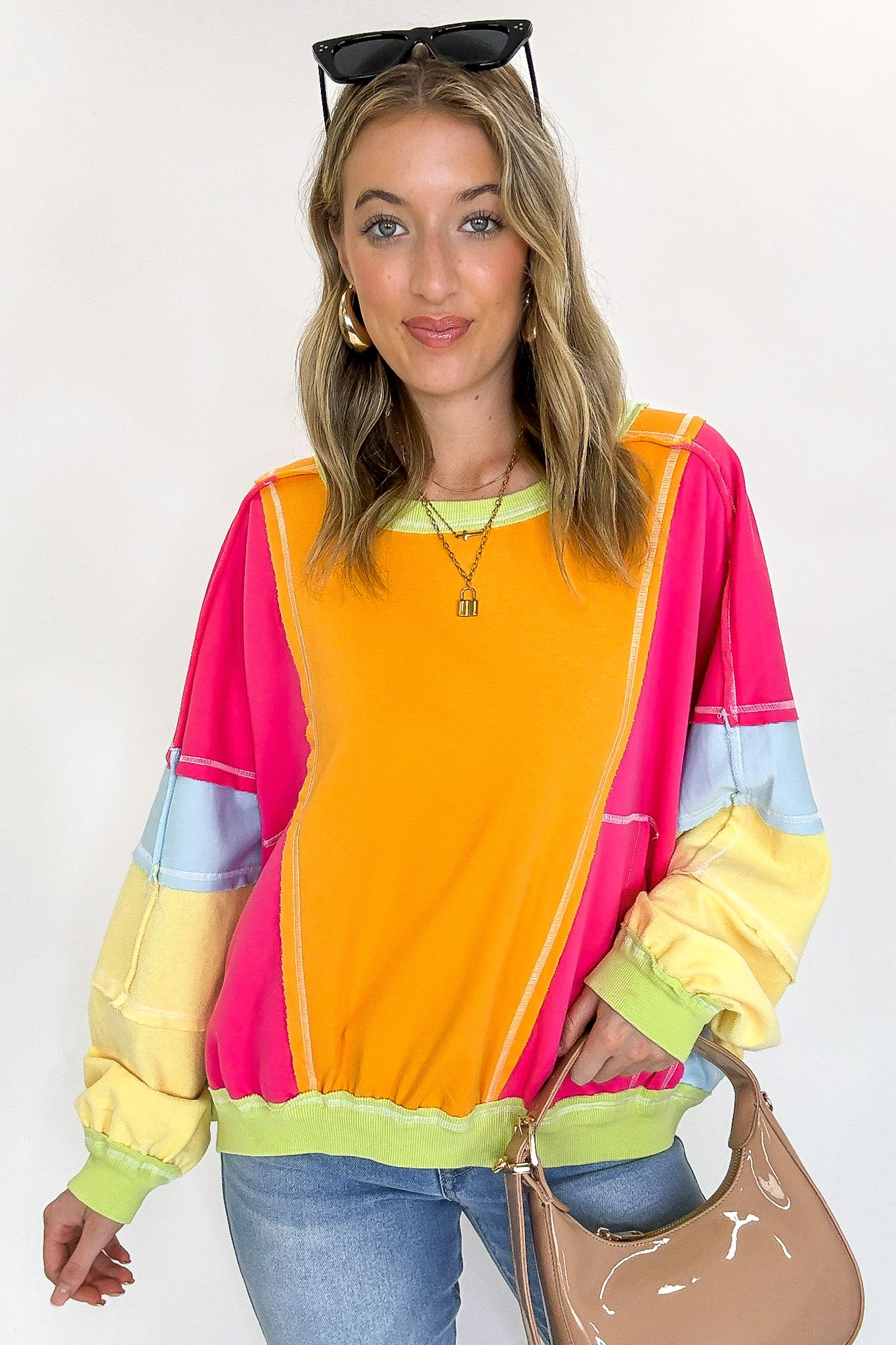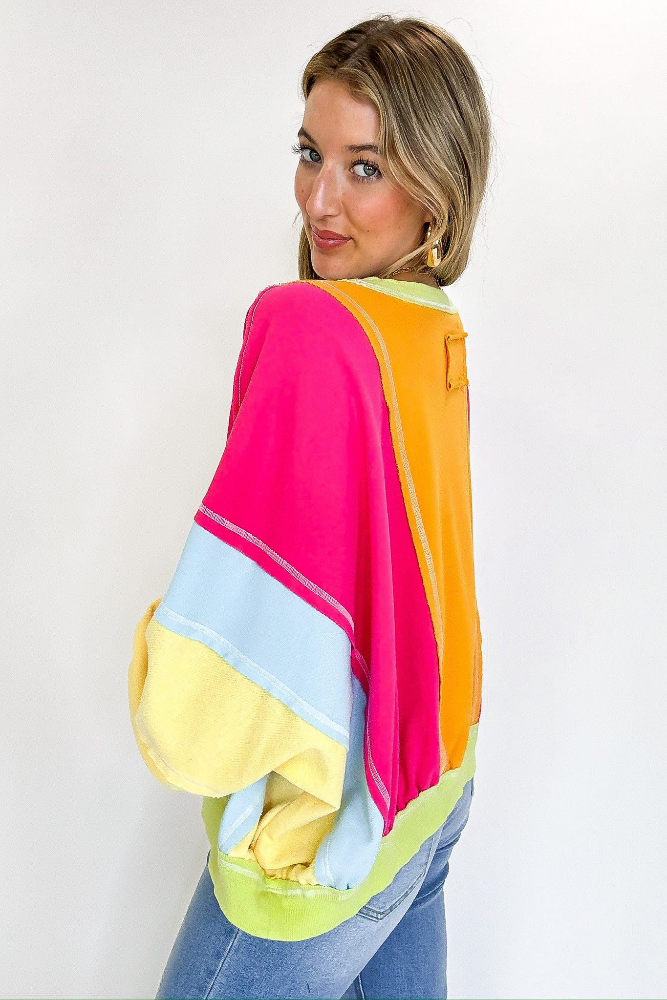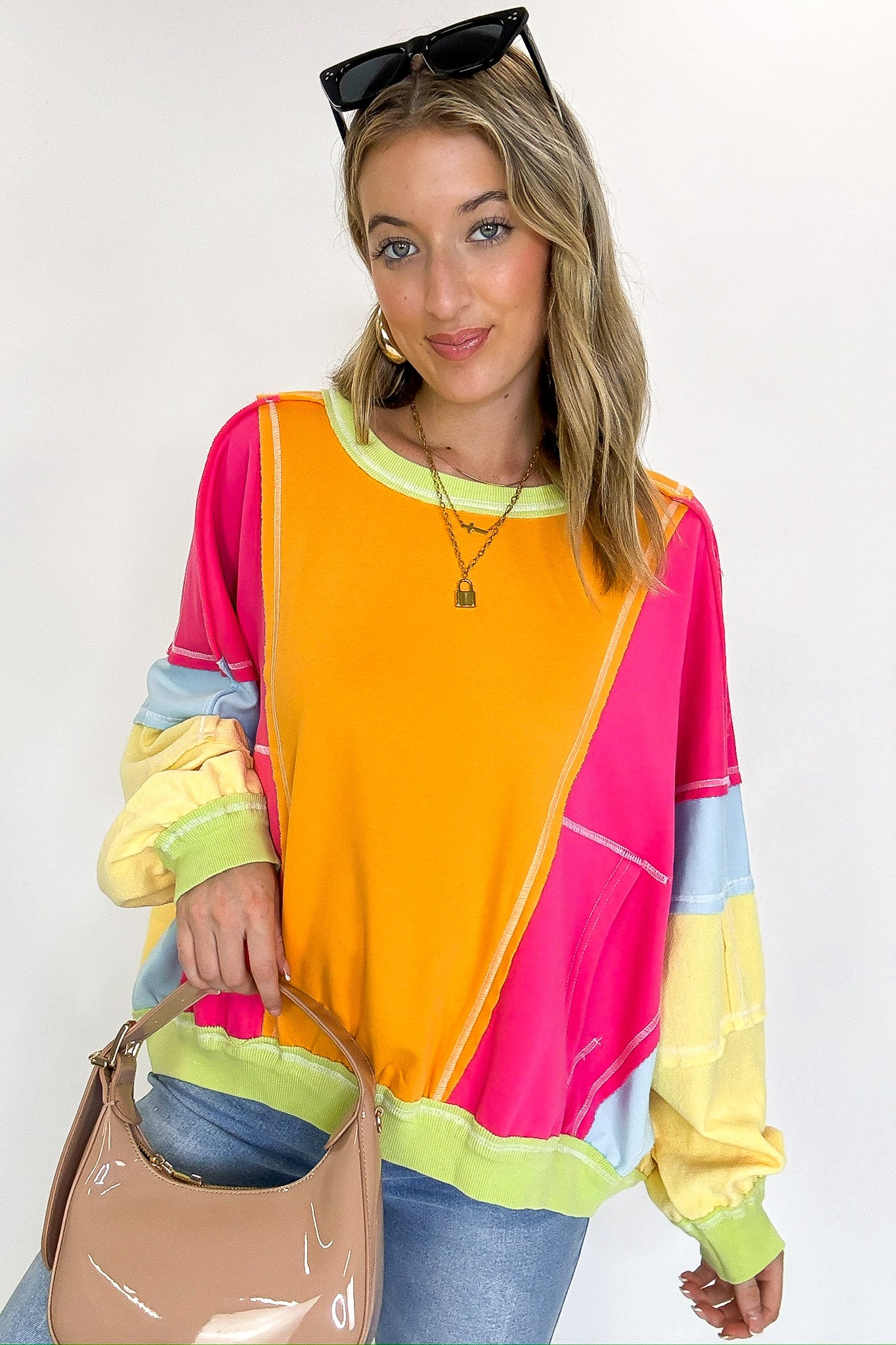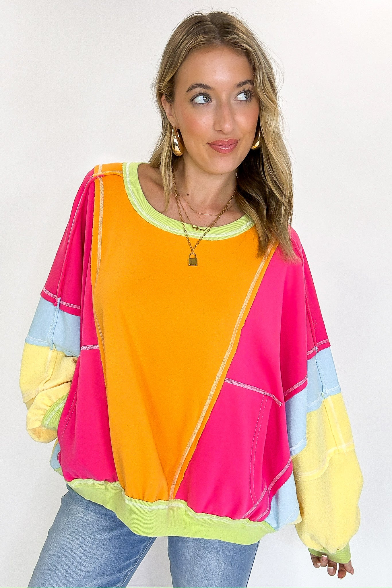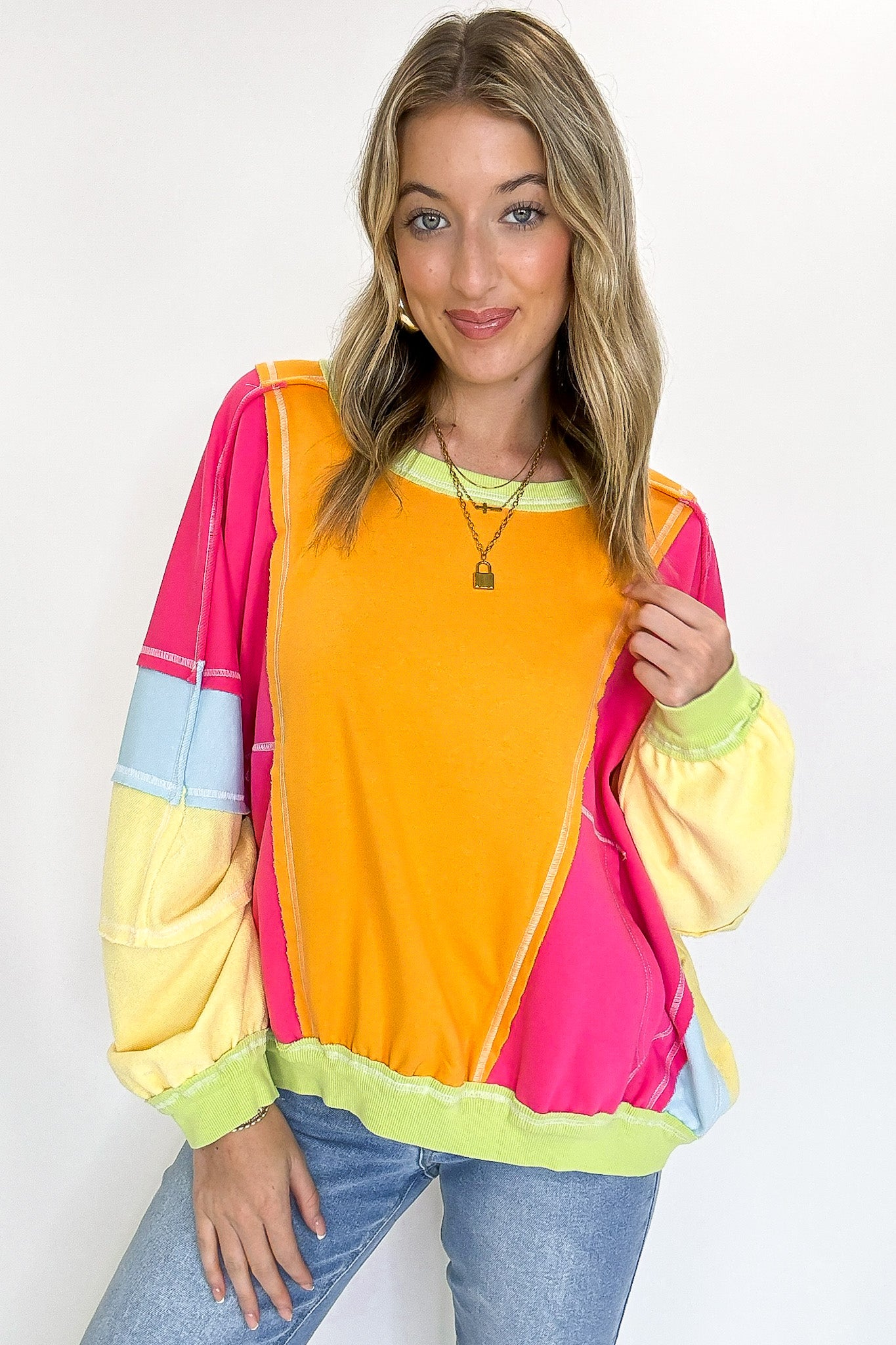 Details: Push the limits of casual cool in the Edge Theory Pullover — a raw-edged, color-blocked dream with a perfectly vintage vibe. Made from ultra-soft French terry and garment-washed for that worn-in feel, this sweatshirt blends bold color blocking with distressed details for a look that's low effort, high impact.